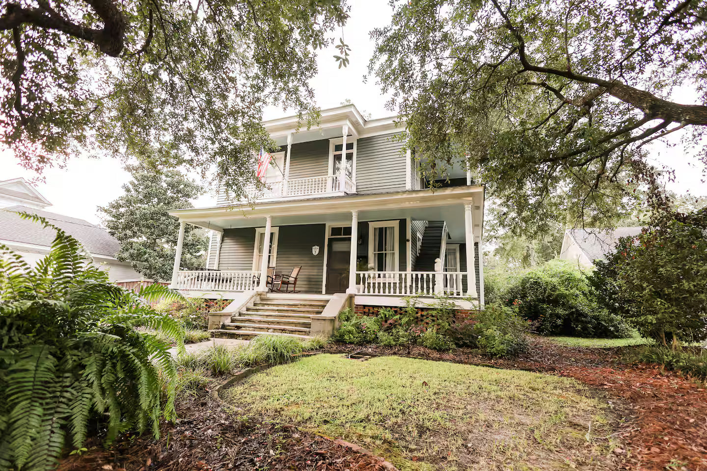 Perched among the oaks, The Treehouse is a 2-bedroom, 1-bath upstairs retreat in the historic Fleming-Ball House—just 3 blocks from downtown Thomasville. This spacious apartment blends historic charm with modern comforts, featuring king beds, Smart TVs, a full kitchen, laundry, and a private deck perfect for sunset views. Guests also enjoy shared outdoor spaces, ample parking, and easy access to shops, restaurants, and landmarks—all in a quiet, treehouse-like setting.