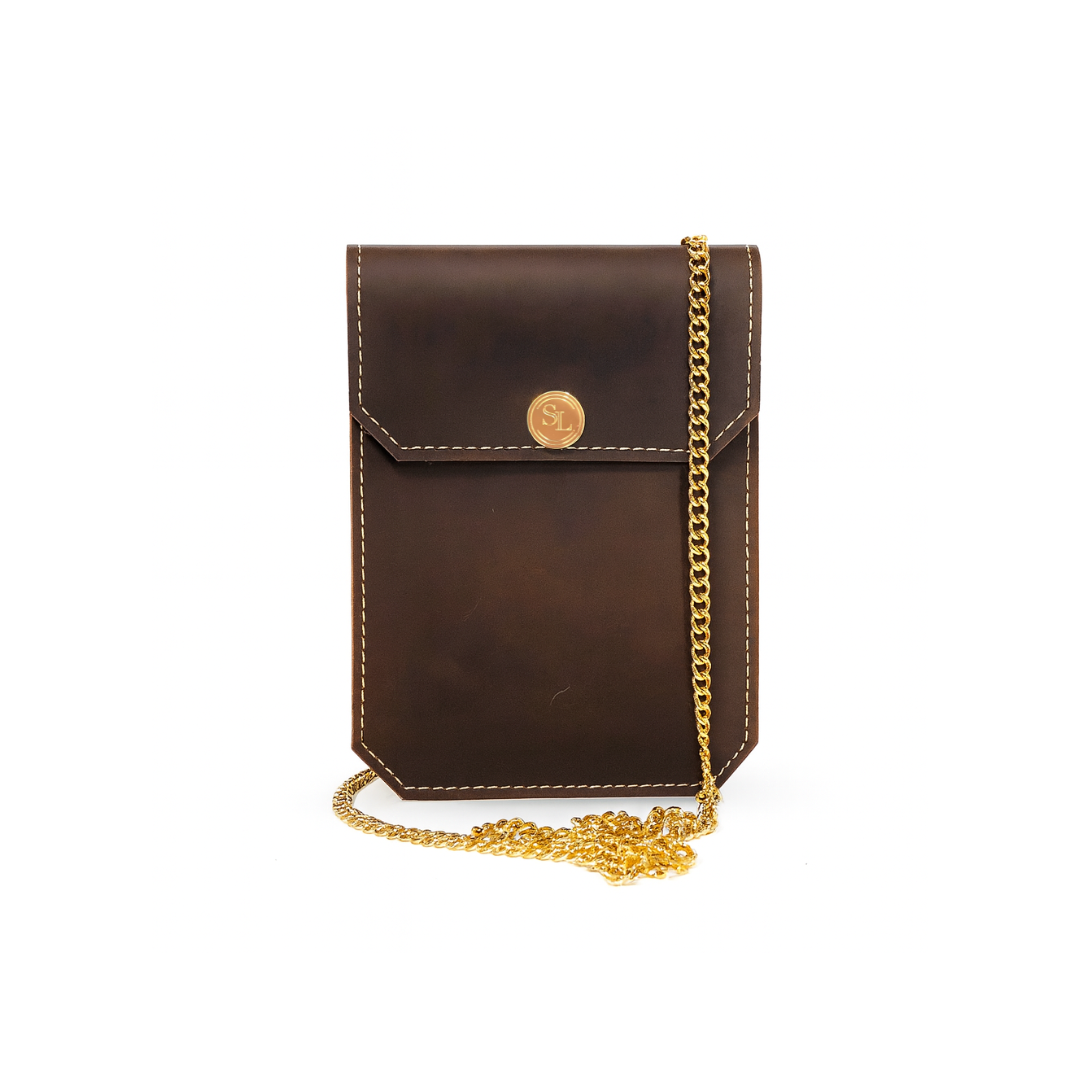 SouthLife's Minimalist is true to its name. Although it will comfortably carry your phone, keys and our Hansell Card Holder, it's designed for those days when you need to travel light. A flap and snap closure ensure the Minimalist will keep your items safe and secure. The removable gold chain strap dresses up this simple bag, but can interchanged with our Leather Crossbody Strap for a more casual look.
